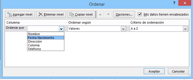 los que queremos ordenar (pulsando Agregar Nivel para añadir un