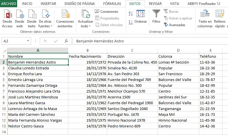 primer apellido, después podemos acceder a la pestaña Datos y