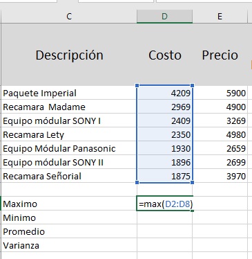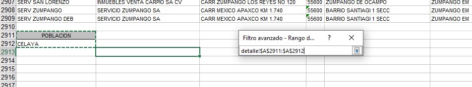 cuenta que nuestro cursor deberá estar en una de la celdas donde