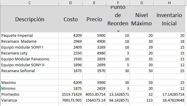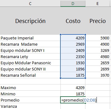 promedio, varianza, generación de mensajes por condición, formatos
