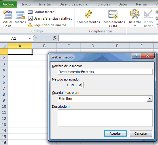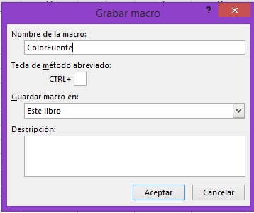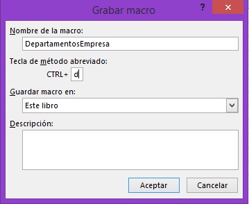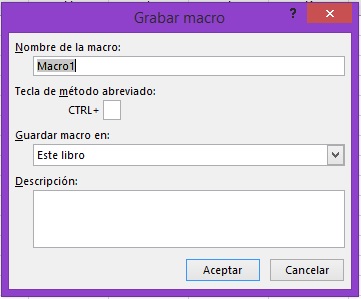 comando Grabar macro lo cual mostrará el cuadro de diálogo donde