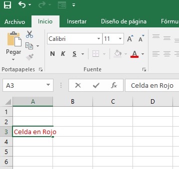 Color de fuente y seleccionaré el color rojo para la celda activa.