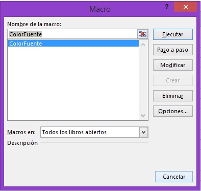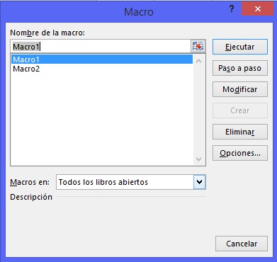 mostrará la lista de todas las macros existentes y de las cuales