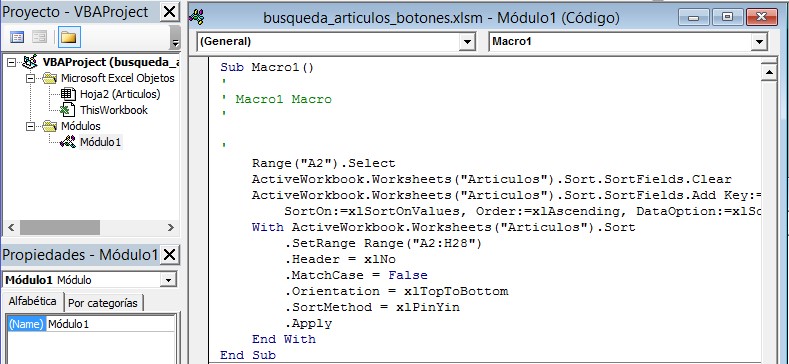 2.- Para ordenar Descripción (Macro2)