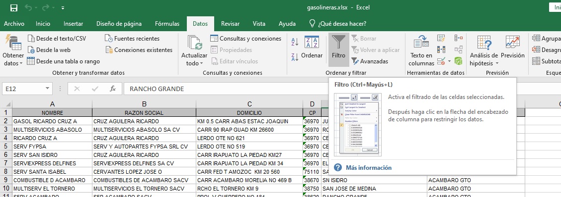 gasolineras_ord2.xlsx en el directorio Mis Documentos o