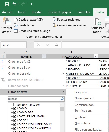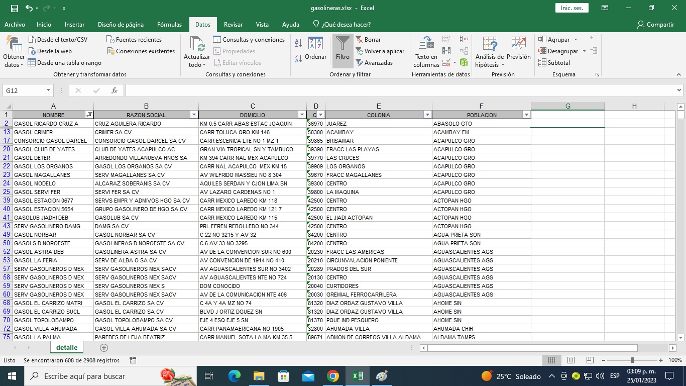 guarde el libro de trabajo con el nombre de gasolineras_ord1.xlsx