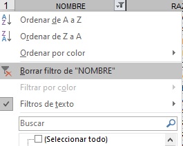campo), si ordenamos según el valor de la celda, o por su color o