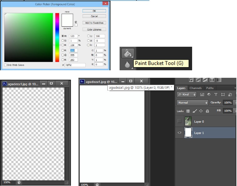 blanco, y el bote pintura para rellenar se hace clic sobre la capa 1