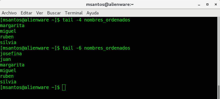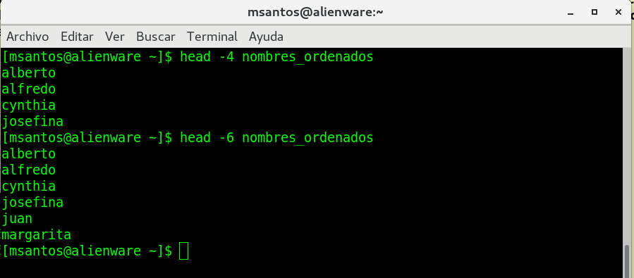 los siguientes comandos: