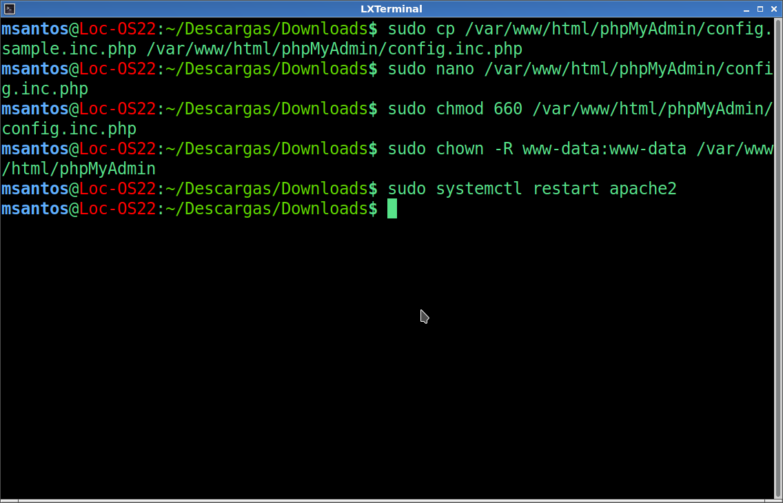 phpMyAdmin en Loc-OS 22