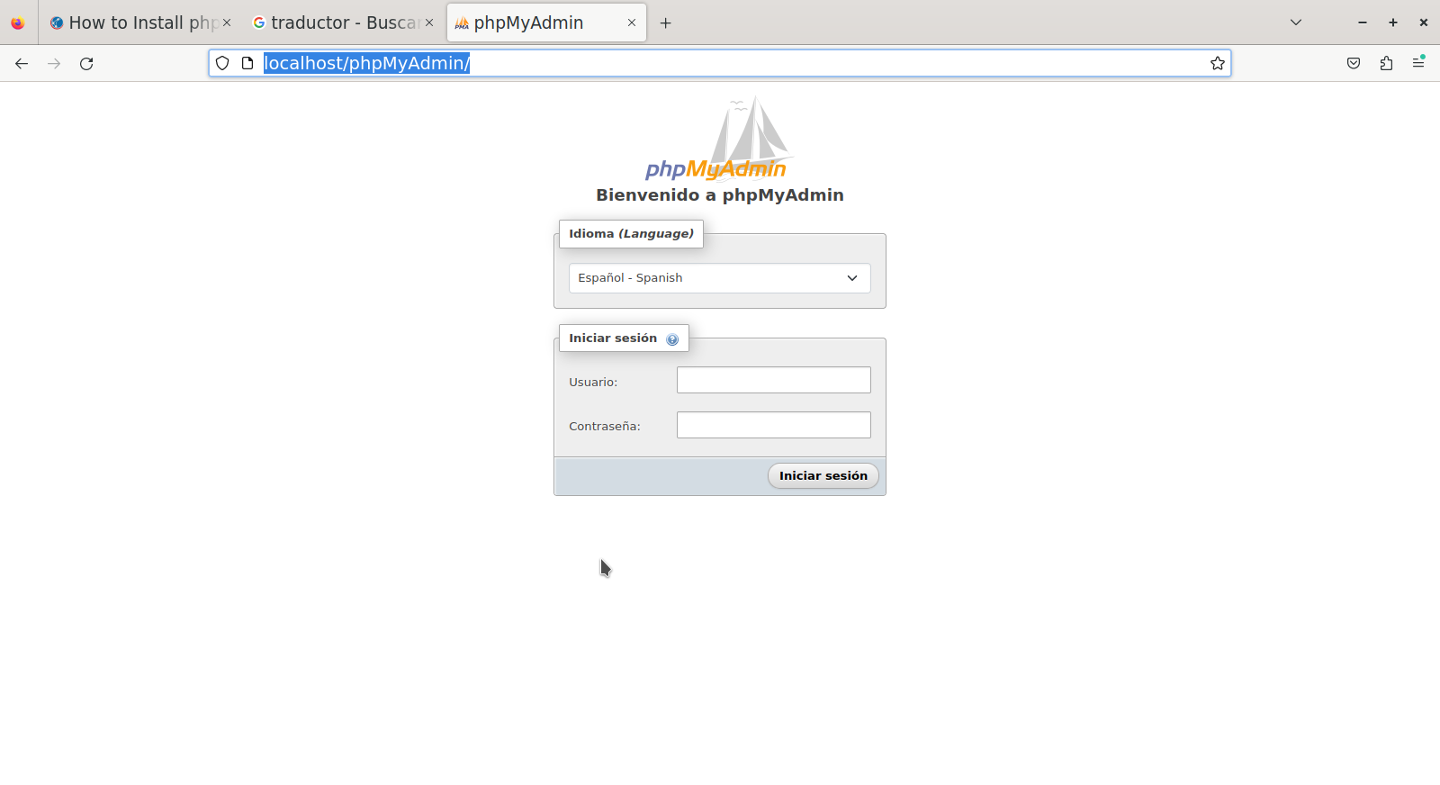 Ahora ha instalado phpMyAdmin en su sistema Debian 11 (Loc-OS22).