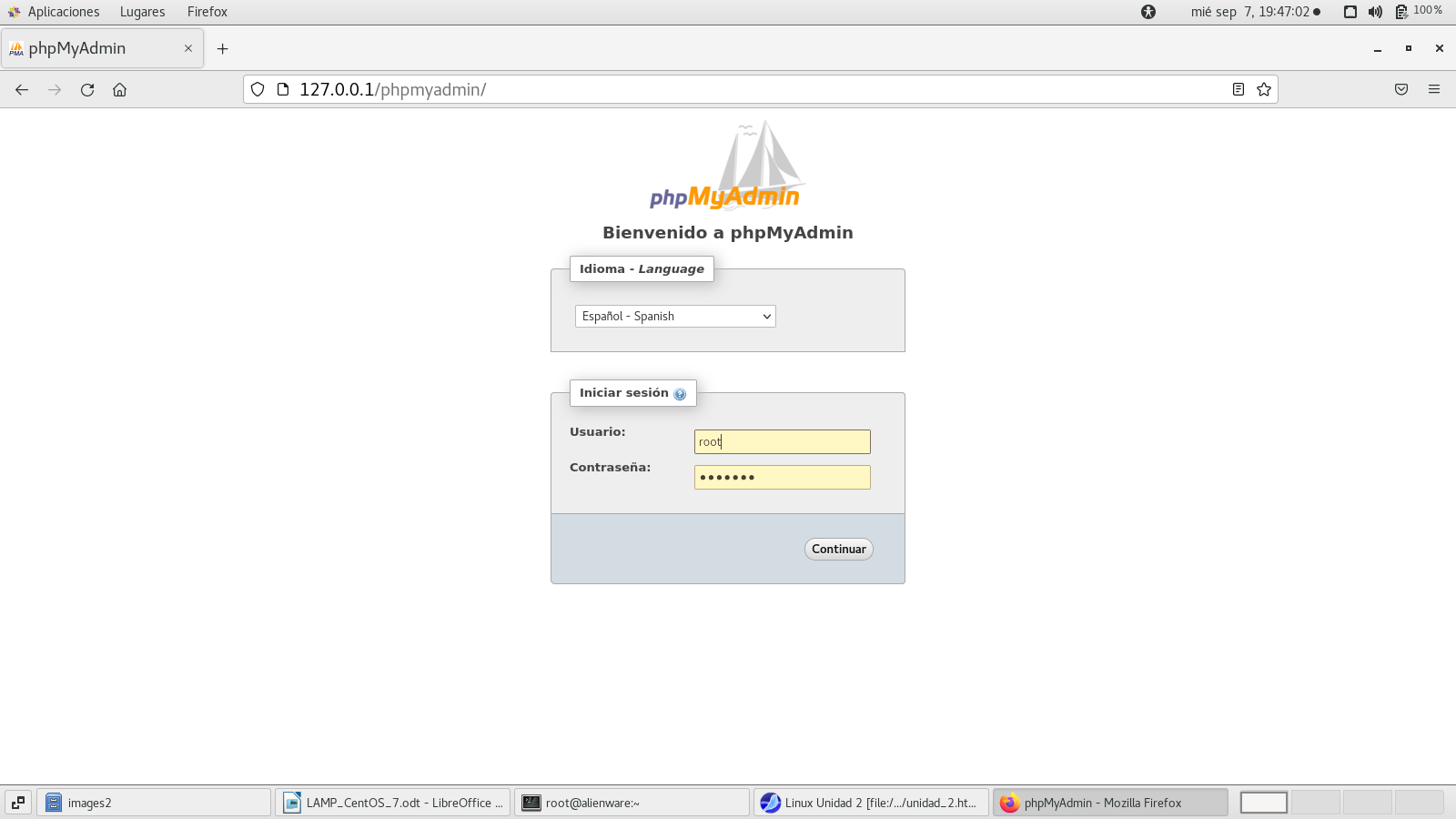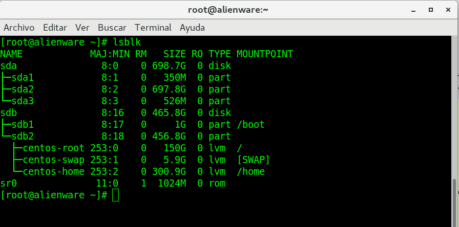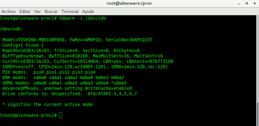 Ahora tenemos que con el siguiente comando. El número 2 equivale