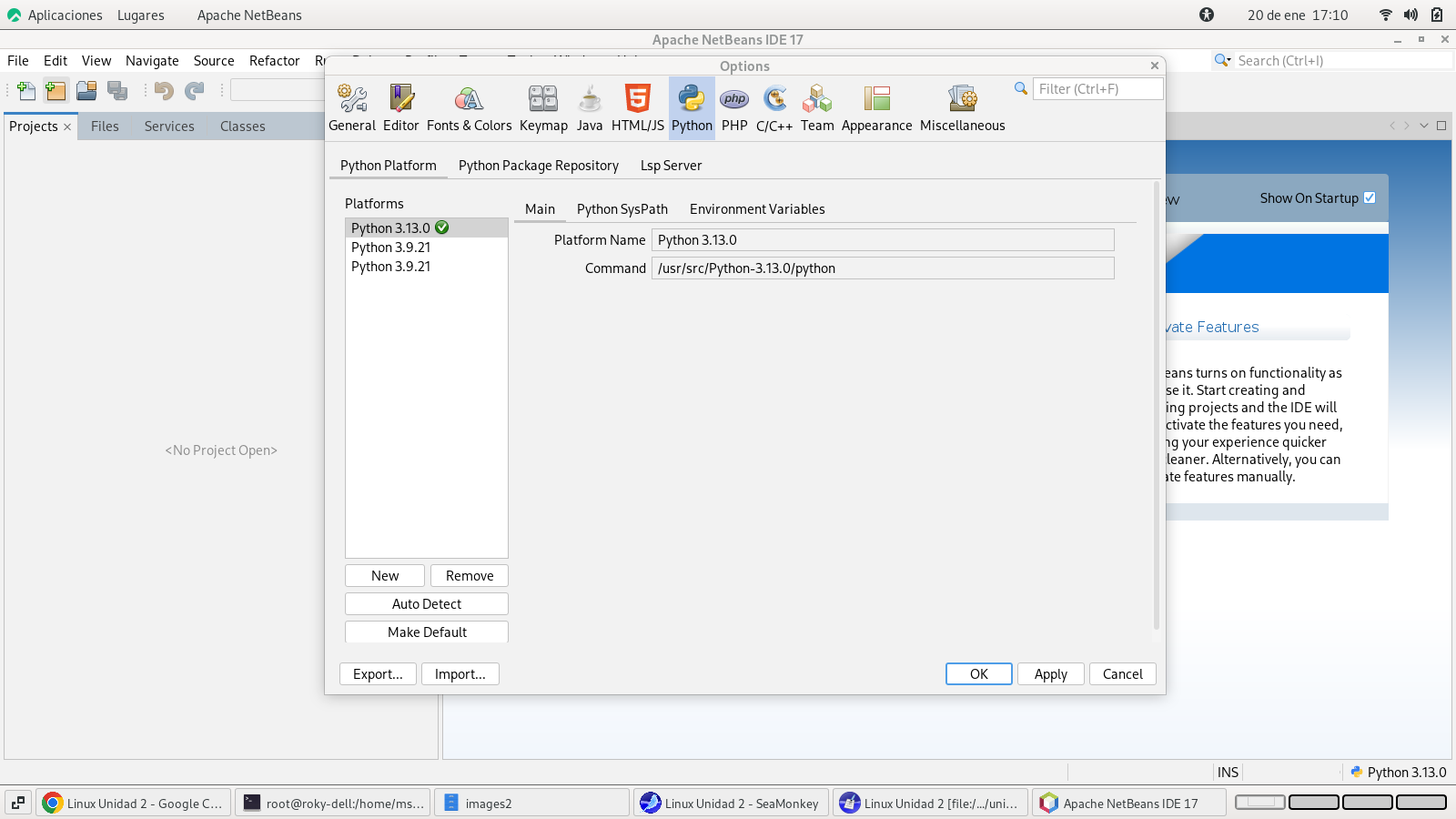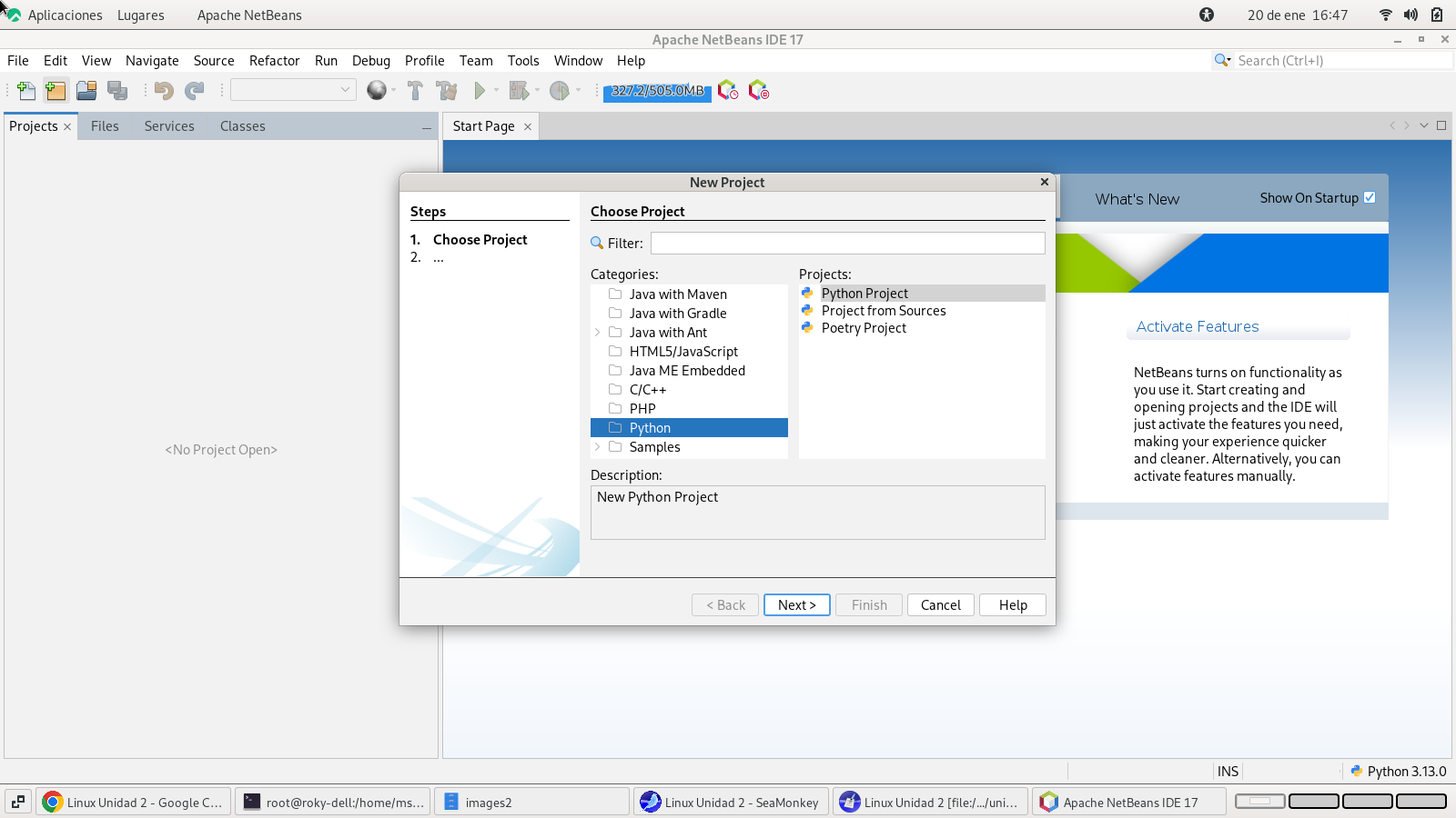 regresamos a la fase de selección del proyecto para python