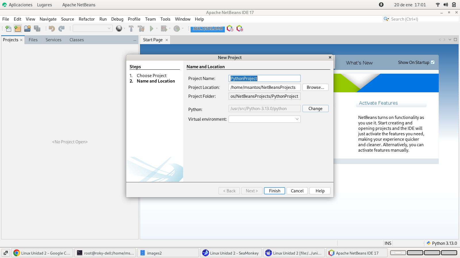 iniciamos un nuevo proyecto y seleccionamos Python