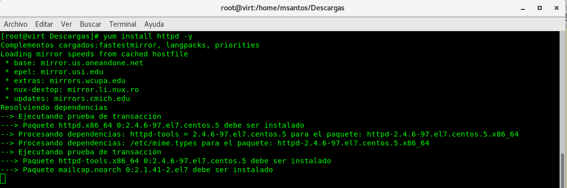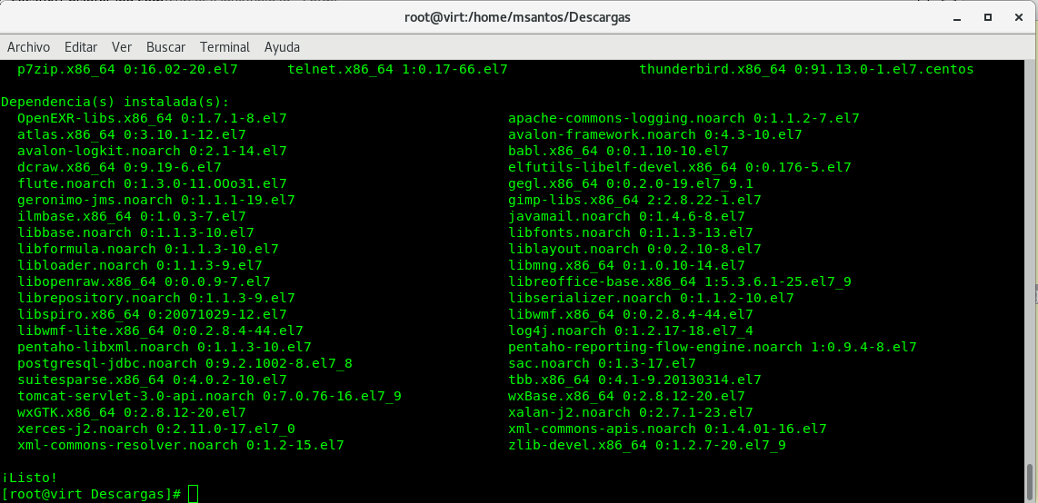 Una vez descargados los paquetes se procederá a