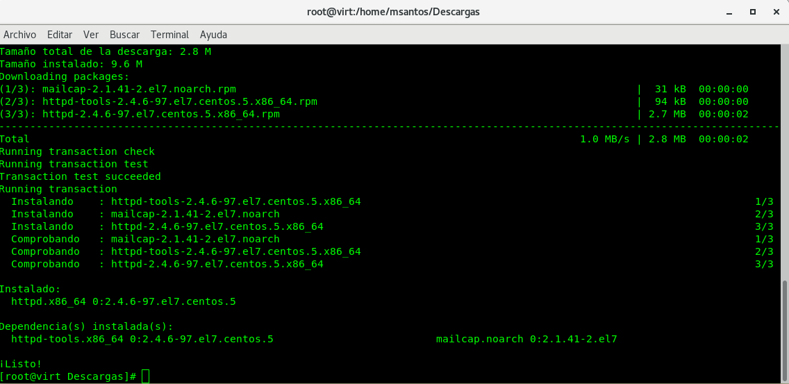 Cuando termine la instalación lo puedes verificar ejecutando