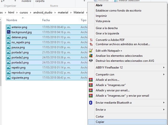 a continuación los copiamos desde este directorio