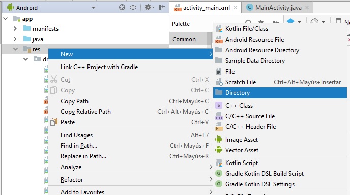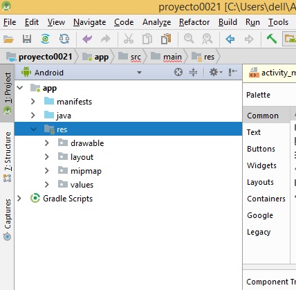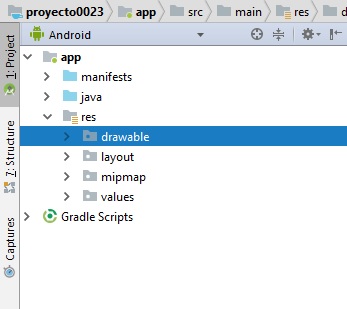 ya estando en Android Studio pasamos a la sección Andriod y app