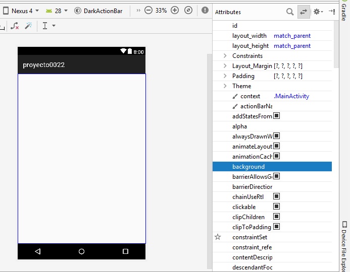 establecemos layout_width a 128dp, y layout_height a 128dp, y al