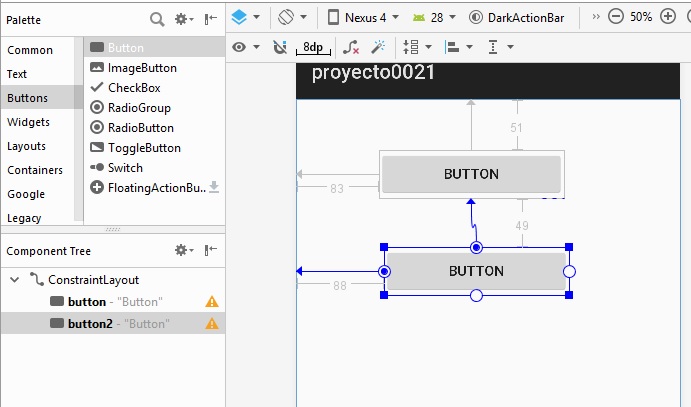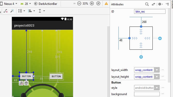 Para el segundo botón usamos layout_width a 128dp, y