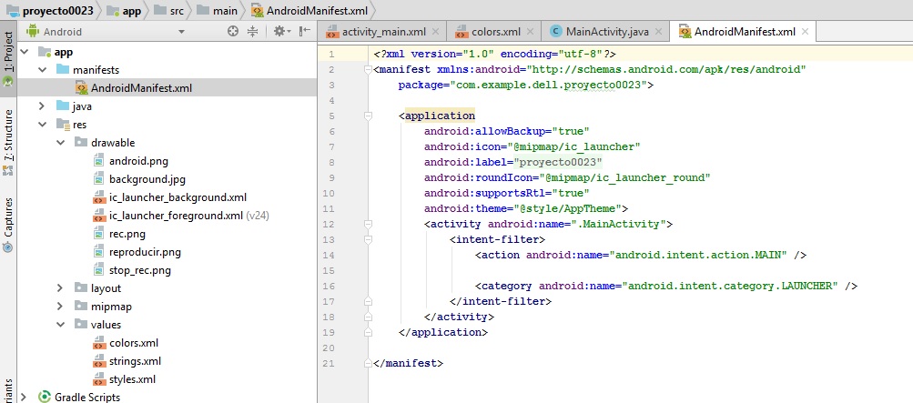 Pasamos ahora a Manifiest y agregamos las lineas siguientes
