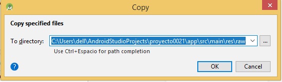 la ruta de los archivos de audio copiados anteriormente