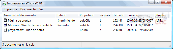 documentos pendientes de imprimir. Cada impresora tiene una cola