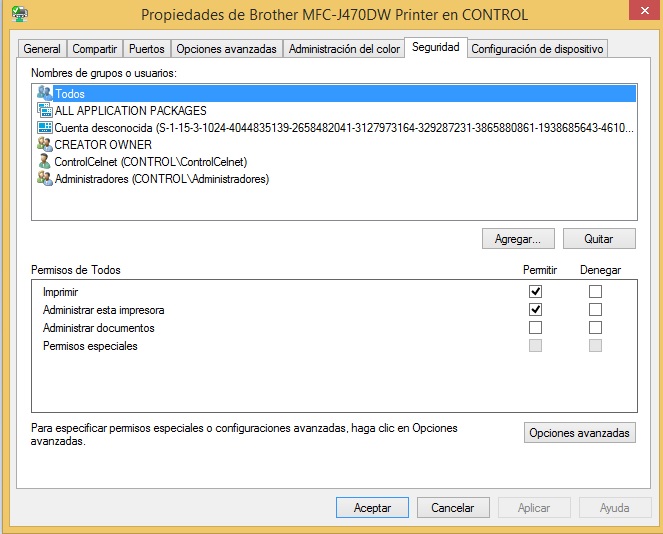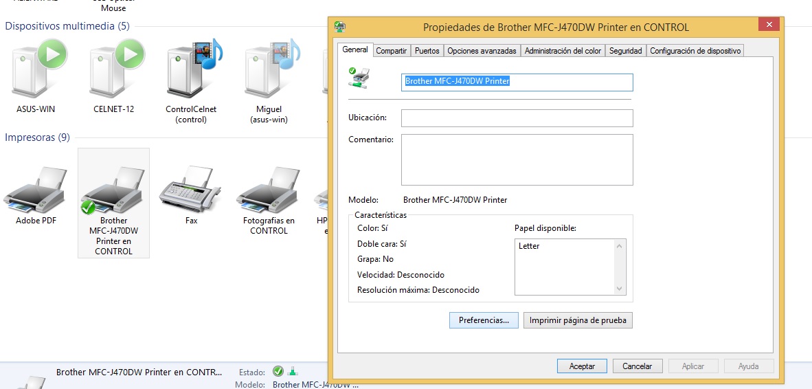 a las que tiene acceso el equipo. Imprimirá por la seleccionada.
