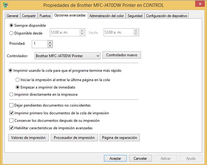 número de documentos en cola, etc. Recuerda que si seleccionas