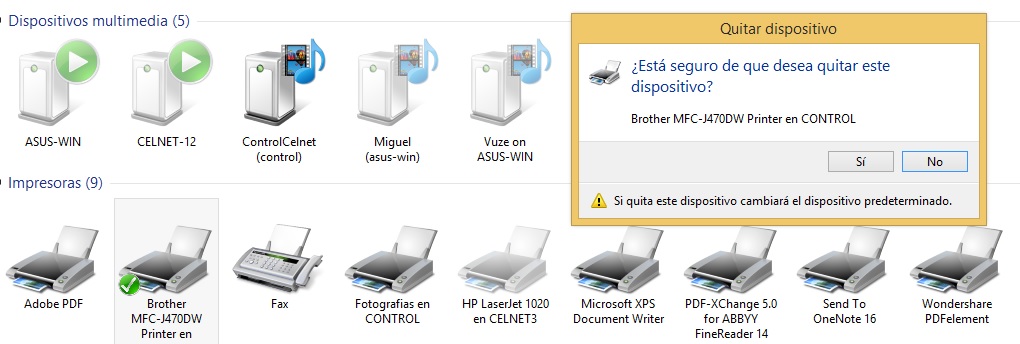 La ventana Dispositivos e impresoras muestran los que tenemos