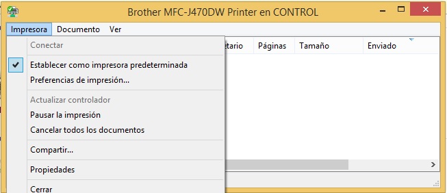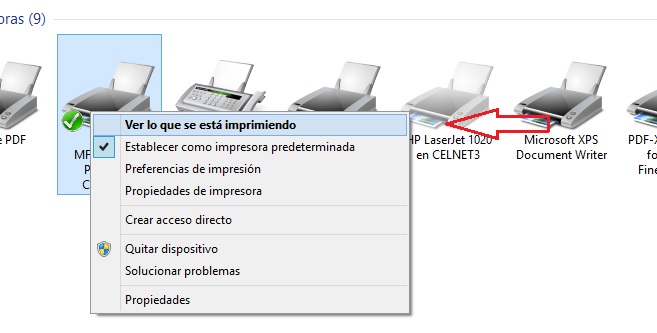 impresora predeterminada de su menú contextual. Sólo puede haber