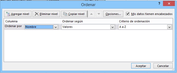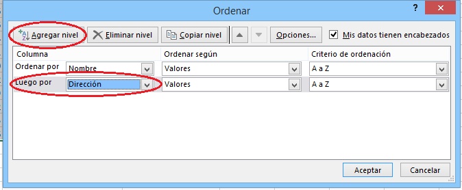 los que queremos ordenar (pulsando Agregar Nivel para añadir un