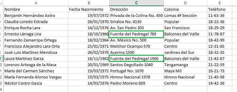 Colonia y Domicilio guarde el libro de trabajo con el nombre de