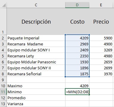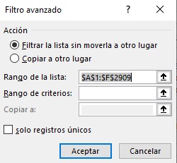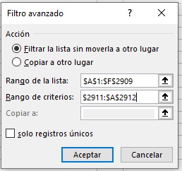 cuenta que nuestro cursor deberá estar en una de la celdas donde