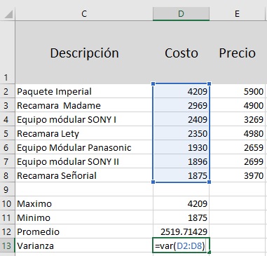 promedio, varianza, generación de mensajes por condición, formatos