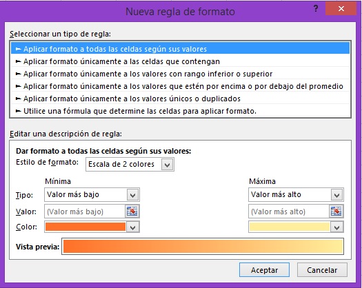 campo), si ordenamos según el valor de la celda, o por su color o