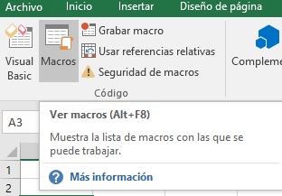 macro, pulsa el botón Macros que se encuentra en el grupo Código