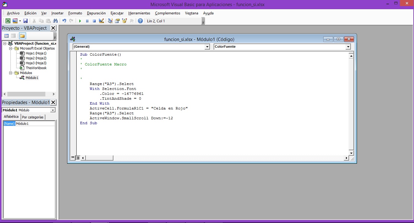 una macro muy sencilla que solamente cambie el color de la fuente