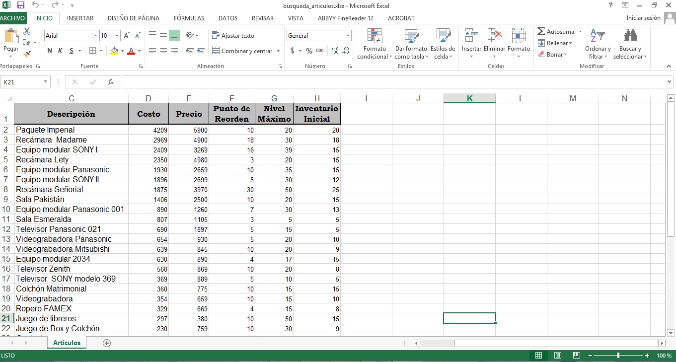 Usamos la hoja: busqueda_articulos.xlsx que previamente se