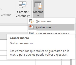 comando Grabar macro lo cual mostrará el cuadro de diálogo donde