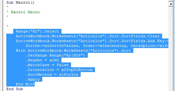 observará el código del macro en color negro seleccionamos esto y