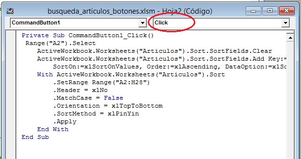 botón para ordenar la lista que se realizó con el macro