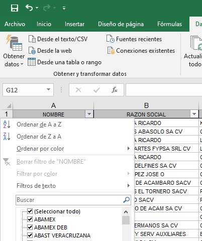 Ordene la misma hoja de la siguiente forma: Por Razón Social,