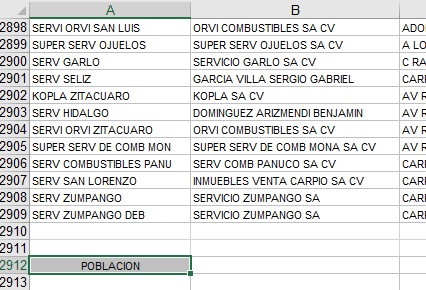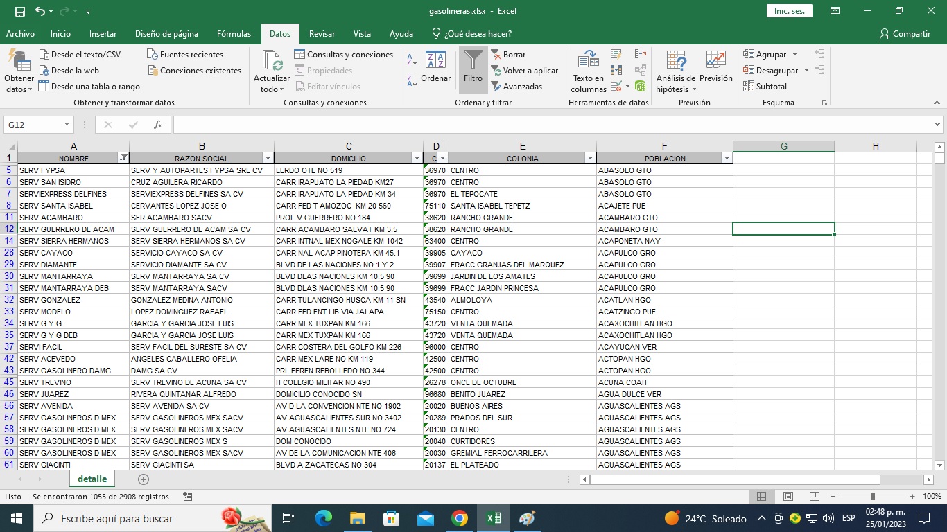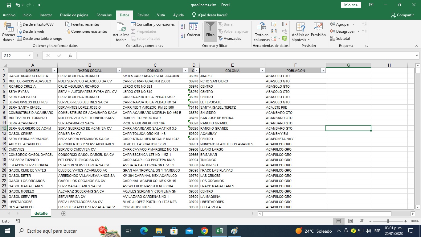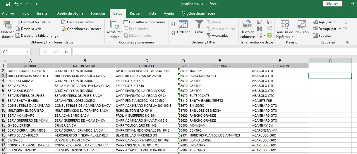 guarde el libro de trabajo con el nombre de gasolineras_ord1.xlsx