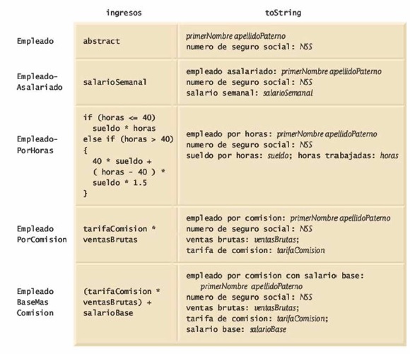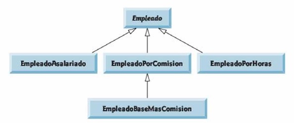 cuatro subclases concretas de Empleado. Se imprimen en pantalla la