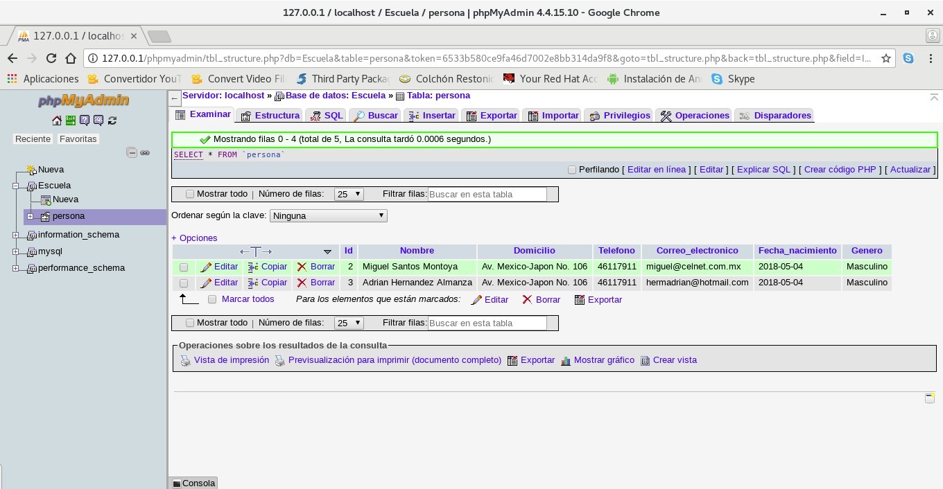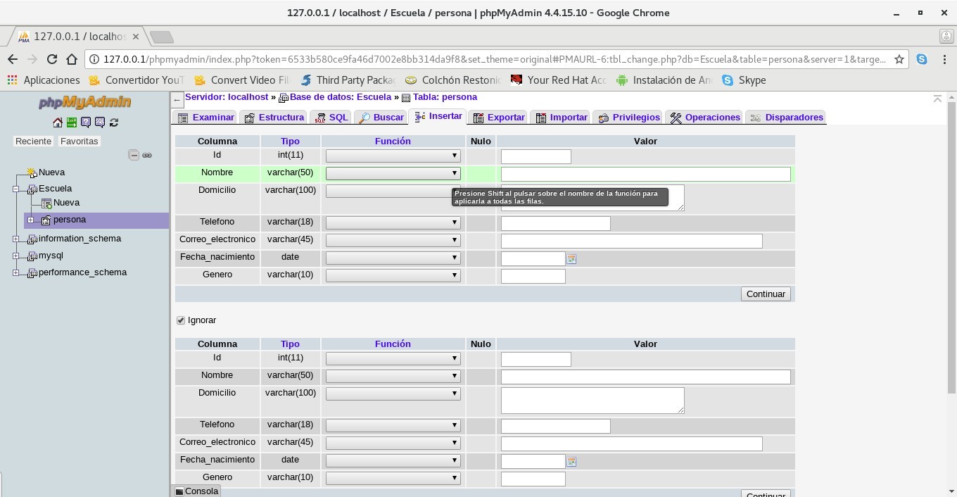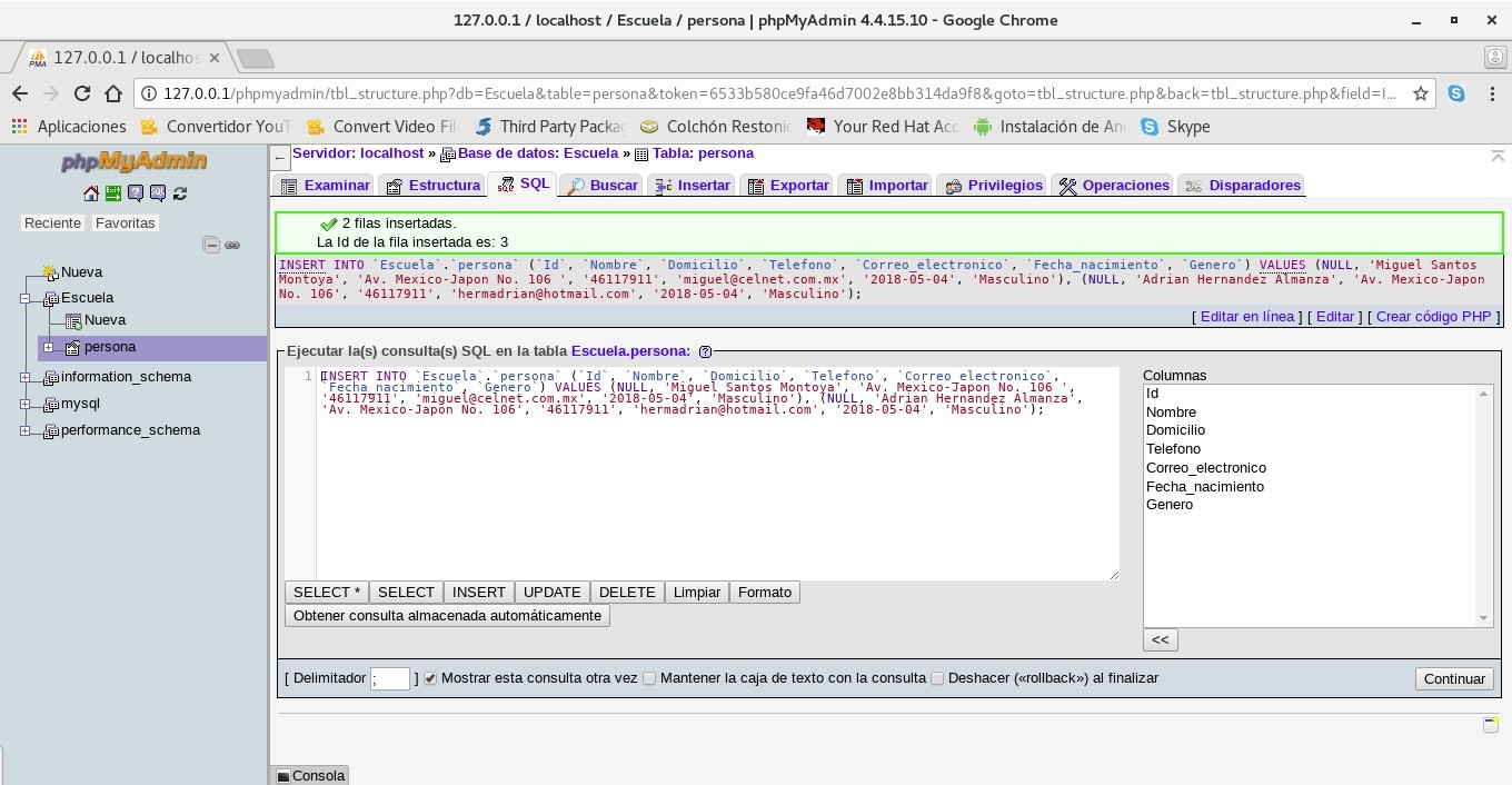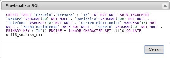 anteriormente, la base de datos llamada Escuela, y agregaremos un