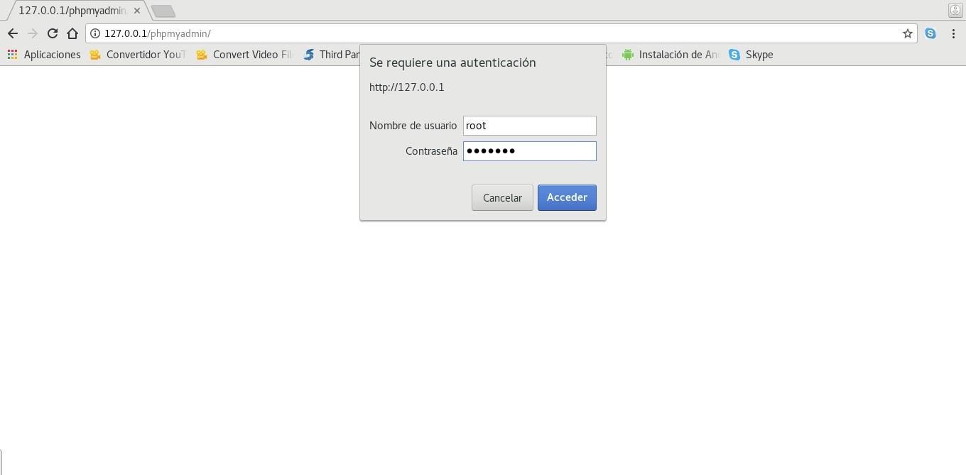 Admnistrador de base de datos: phpmyadmin (necesario instalar Apache y