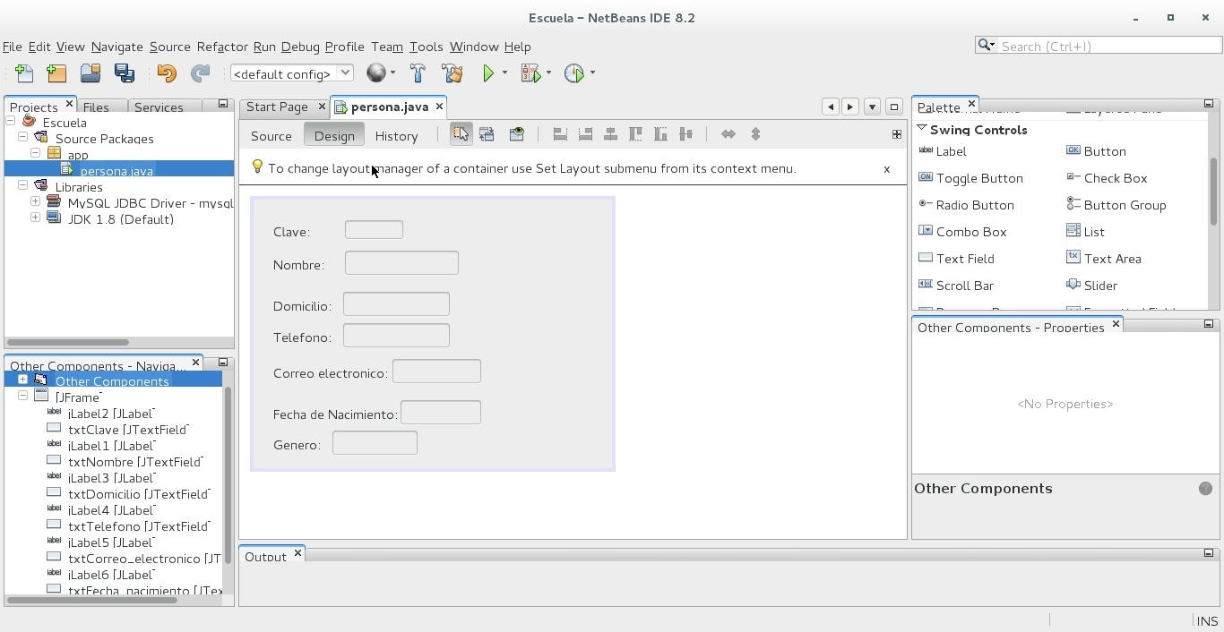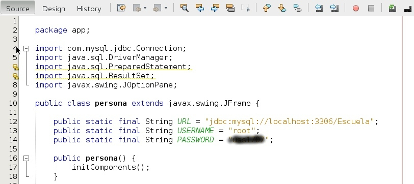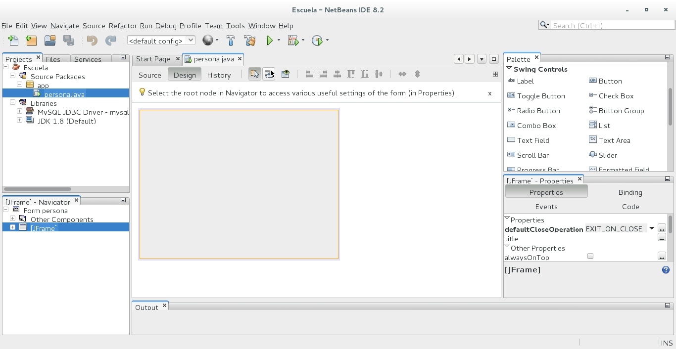 Proseguimos con NetBeans para crear con un frame el ejemplo con un botón para la consulta de la base de datos.