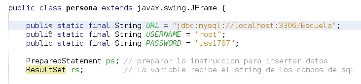 PreparedStatement ps; // preparar la instruccion para insertar datos