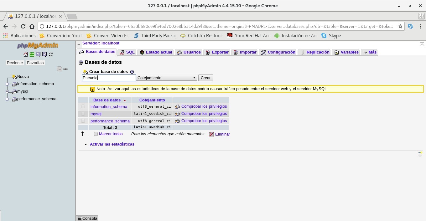Para ello usamos phpmyadmin para iniciar MySQL (Maria DB),